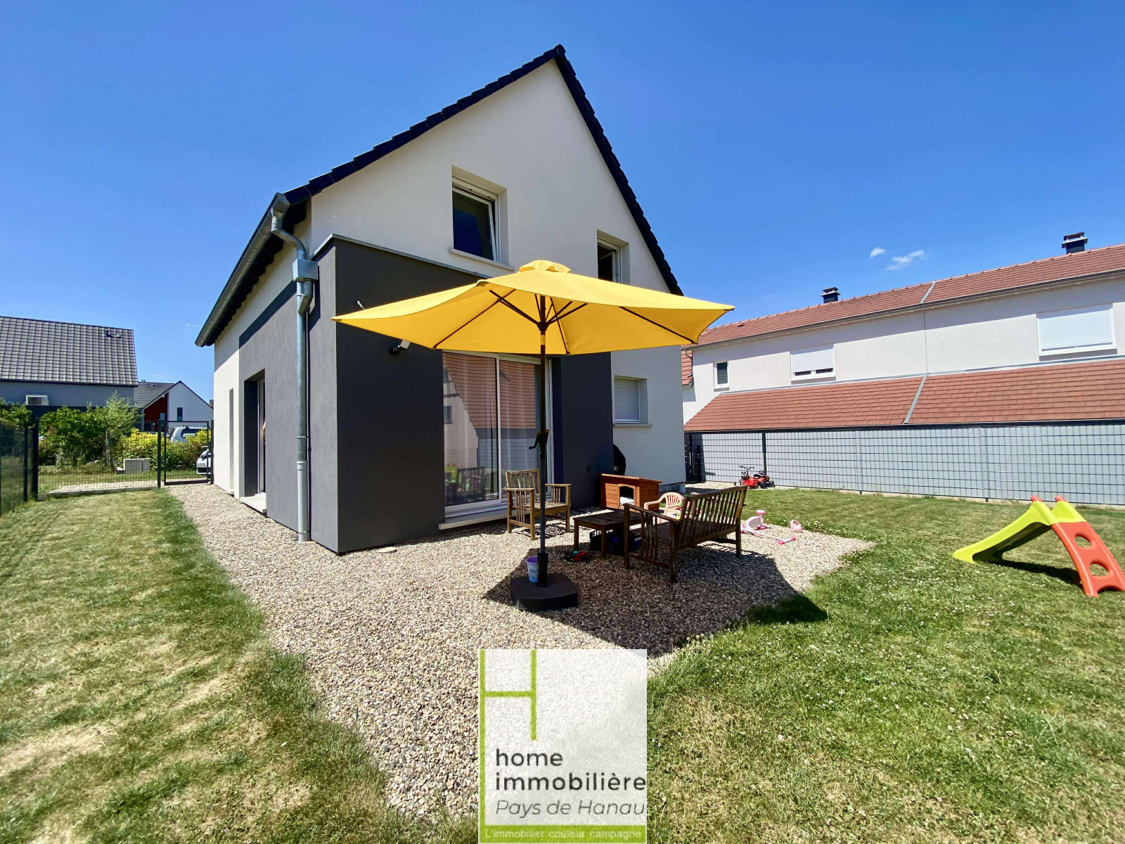 Belle maison neuve de 110 m² habitables sur un terrain clôturé d'environ 5 ares. Construite en 2023, cette maison meublée sera disponible au plus tard le 15 Juillet 2025.