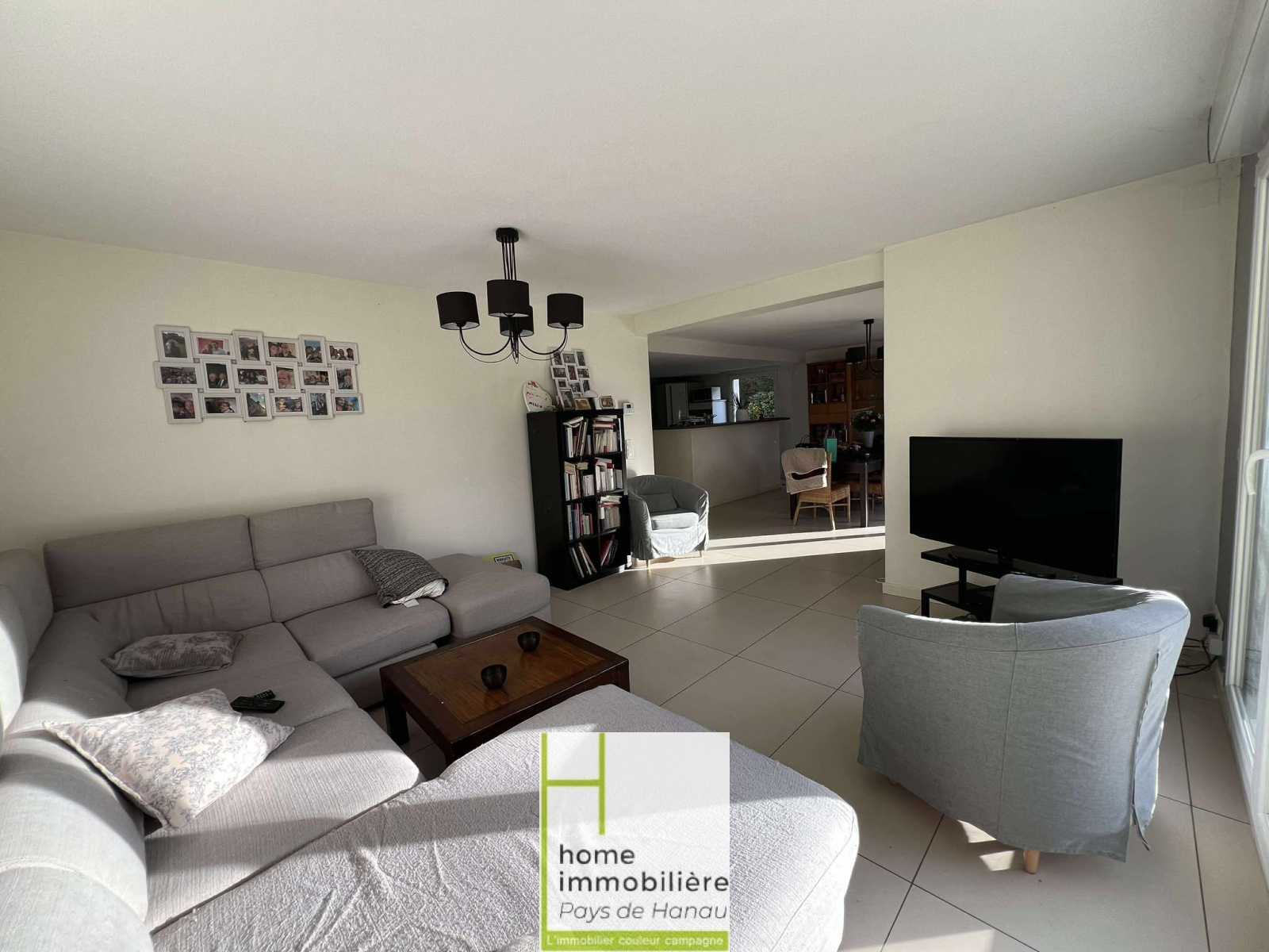 Un superbe espace de vie ouvert de 50 m² comprenant séjour, salle à manger et cuisine équipée, le tout baigné de lumière grâce à de grandes baies vitrées ouvrant sur la terrasse et le jardin
